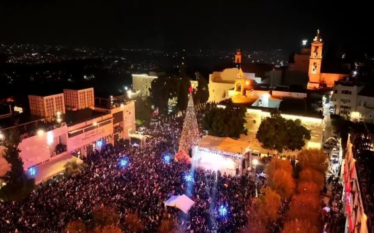 Depois de dois anos sem festividades natalinas, Belém, na Cisjordânia, voltou a iluminar sua árvore de Natal. A cerimônia aconteceu na noite de sábado (6) na entrada da Praça da Manjedoura.