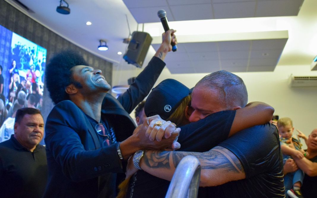 Batismo do empresário Marcelo Portuga teve bênção especial feita pelo cantor Thalles Roberto. Foto: Divulgação.